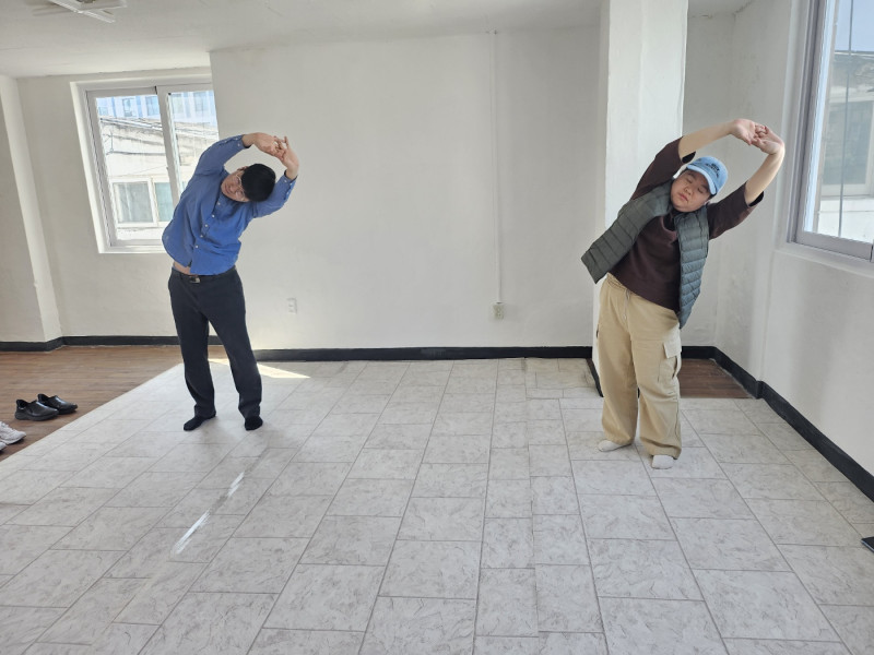 그런 뒤에 다양한 스트레칭 동작을 통해 전신 근육 이완 및 긴장해소를 하는 시간을 가졌습니다.