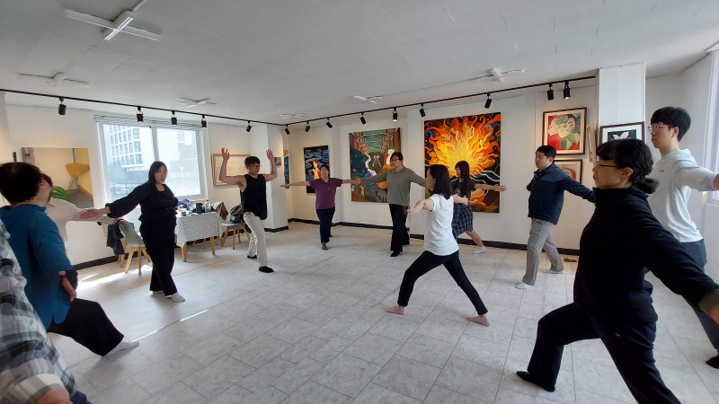 최근 4층을 갤러리처럼 꾸며 놓았는데 멋있는 공간에서 다같이 스트레칭 할 수 있어서 즐거운 시간이었습니다.