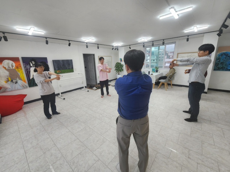전체 자조모임 시간 후에는 30분 동안 스트레칭 하는 시간을 가졌습니다.