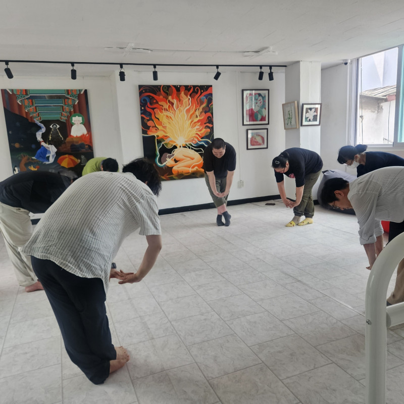 전체 자조모임 시간 후에는 30분 동안 스트레칭 하는 시간을 가졌습니다.